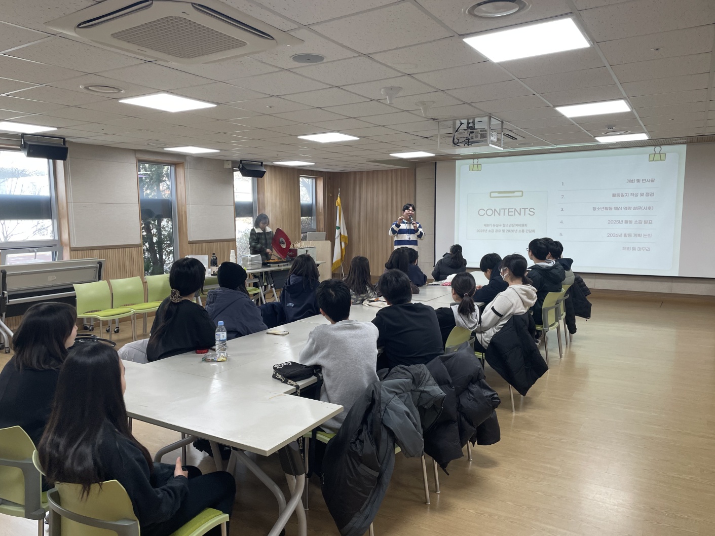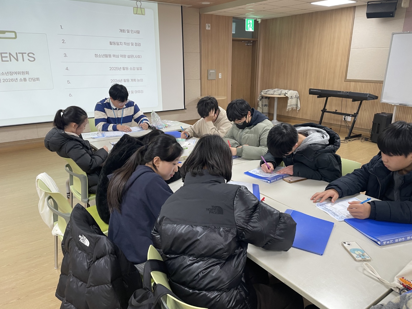 지난 1년동안 다양한 활동을 적극적으로 참여해온 제8기 유성구 청소년참여위원회의 마지막 활동이 진행되었습니다!!! 한 해를 돌아보며 인상 깊은 점, 하고 싶었던 말, 성장한 부분, 2026년 활동 추천 등 다양한 느낀 점에 대해 이야기를 나누어보는 뜻 깊은 시간을 가졌습니다.