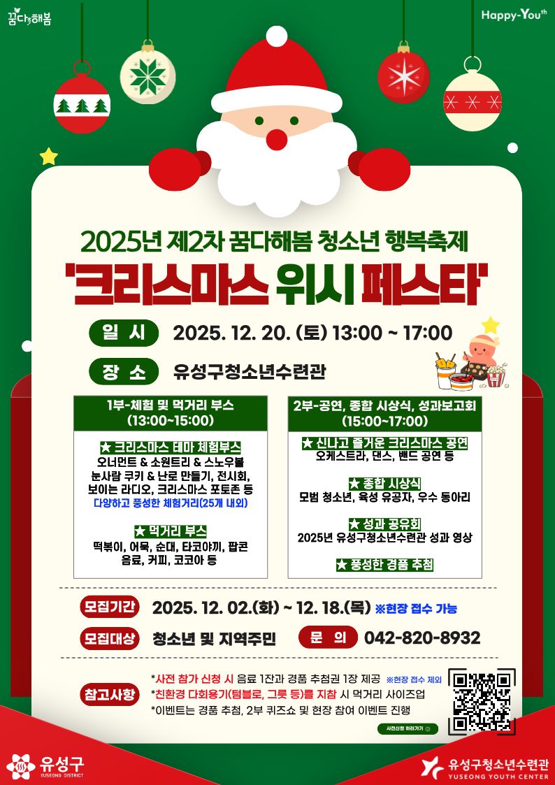 [모집] 2025년 제2차 꿈다해봄 청소년 행복축제 '크리스마스 위시 페스타' 참가자