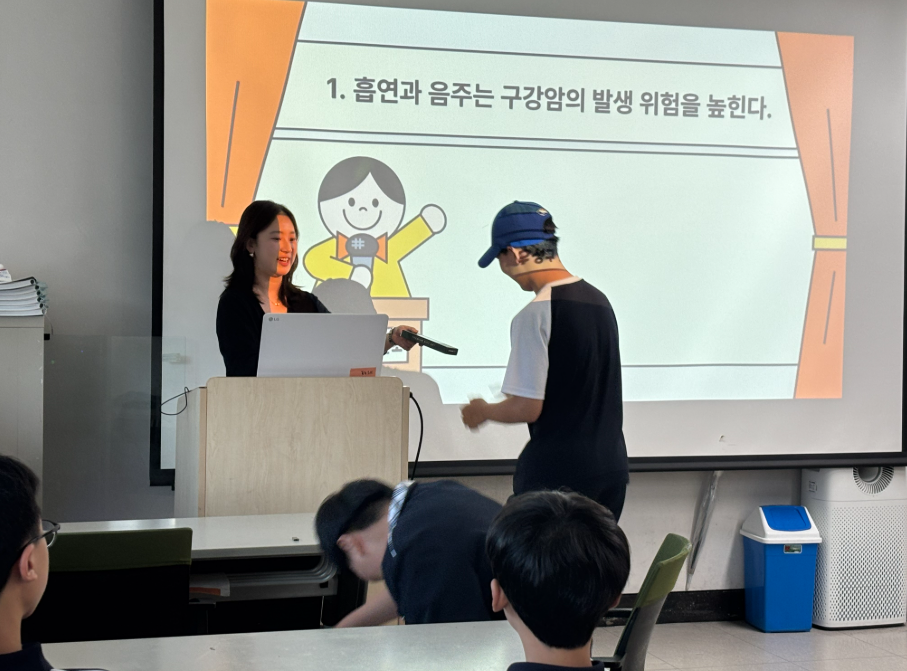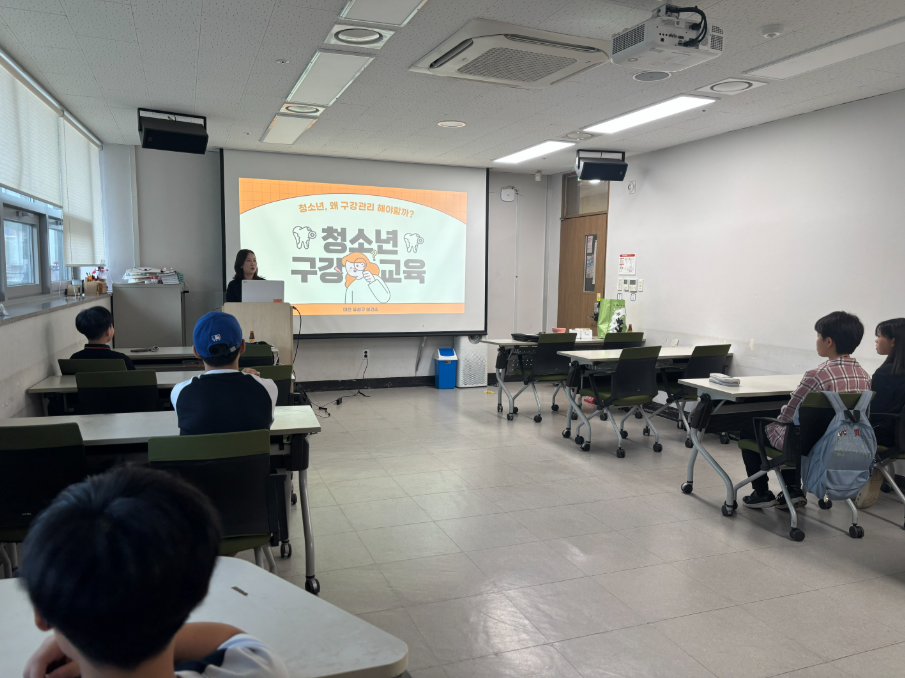 2025년 9월 11일 목요일 청소년방과후아카데미와 유성구보건소가 연계하여 청소년기의 구강특징, 주요 구강질환 그리고 예방과 관리법을 알아보았습니다. 예방에 있어서 제일 중요한 잇솔질을 강사님과 함께 배워보고 입안에 있는 세균을 관찰하며 치아관리에 대한 중요성을 알아가는 시간이었습니다.