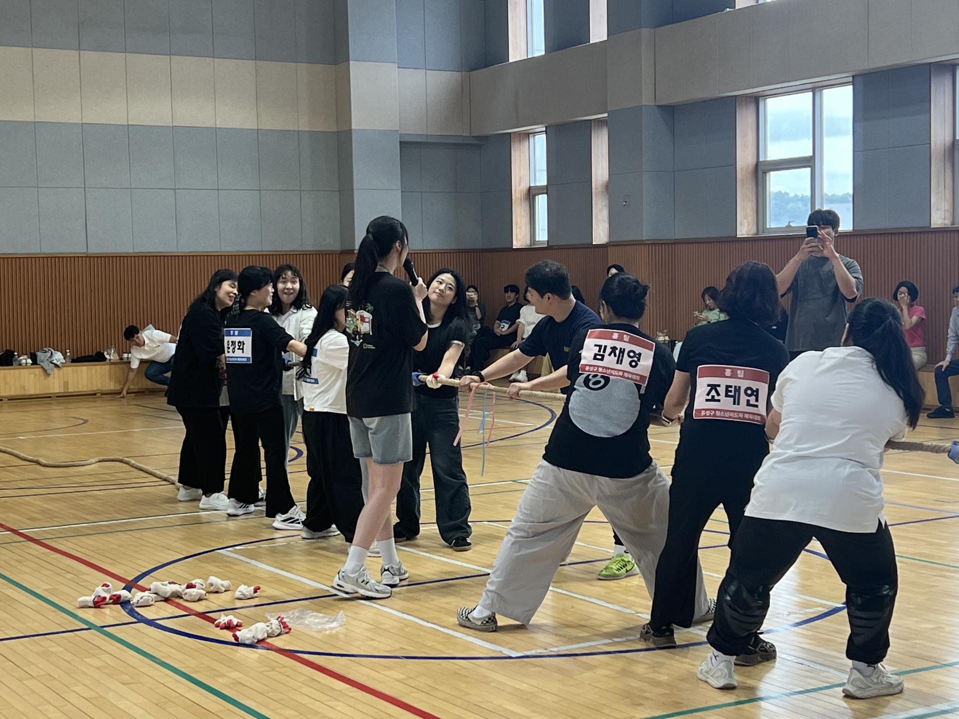 청소년지도자 선생님들이 줄넘기, 줄다리기, 피구, 족구, 계주 등 체육 활동을 통해 오랜만에 신나는 시간을 보냈습니다~~